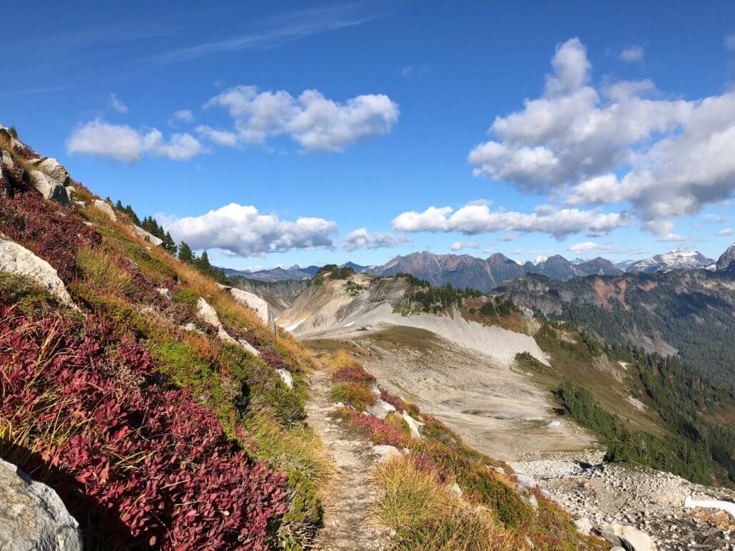 This hike was a reminder of how lucky I am to live in Washington. Between Mount Rainier, Mount Saint Helens, Mount Baker, Mount Shuksan, the North Cascades, Central Cascades and more, we are surrounded with beauty. After completing the Heather Maple Pass Loop a few days earlier, we headed to the Mount Baker region to explore more fall colors. We hit this on a sunny and warm day for October. While we experienced a layer of snow on top of the fall colors a few days earlier, seeing them crystal clear was lovely.