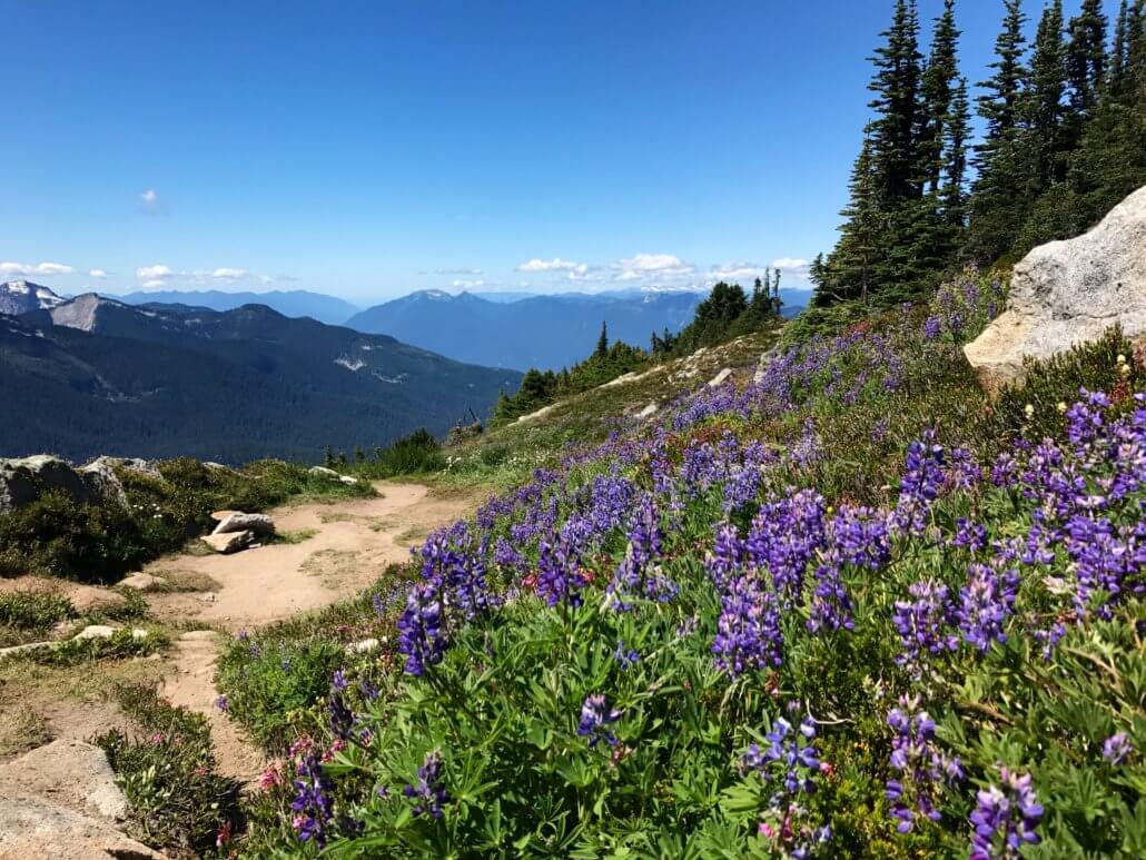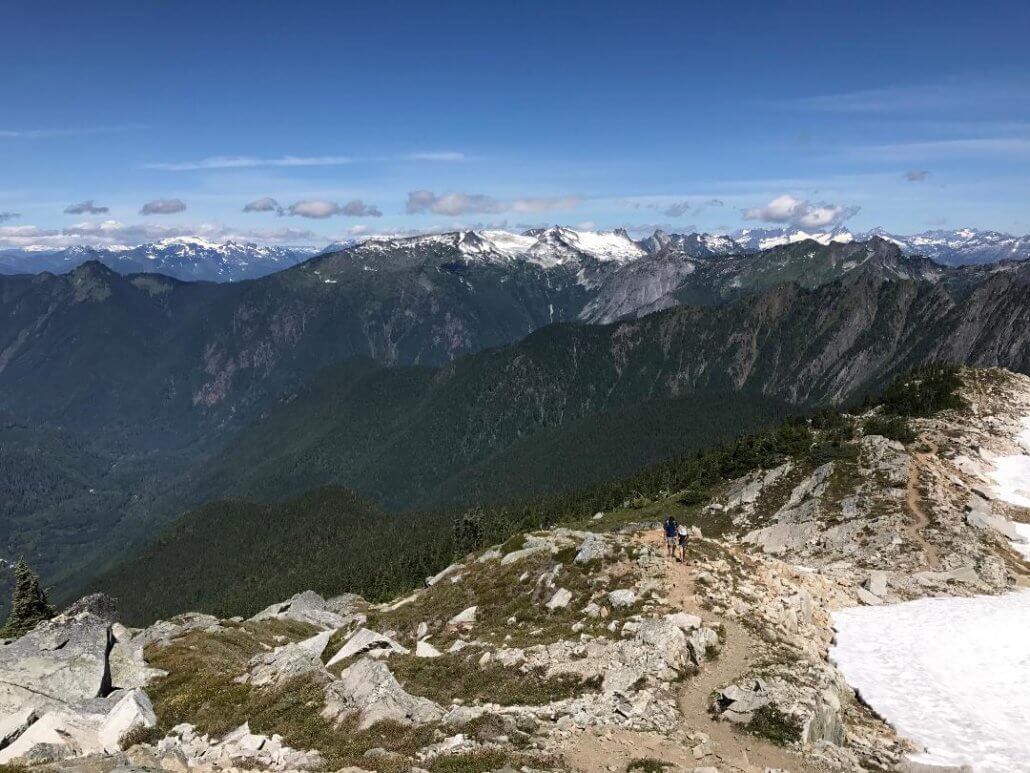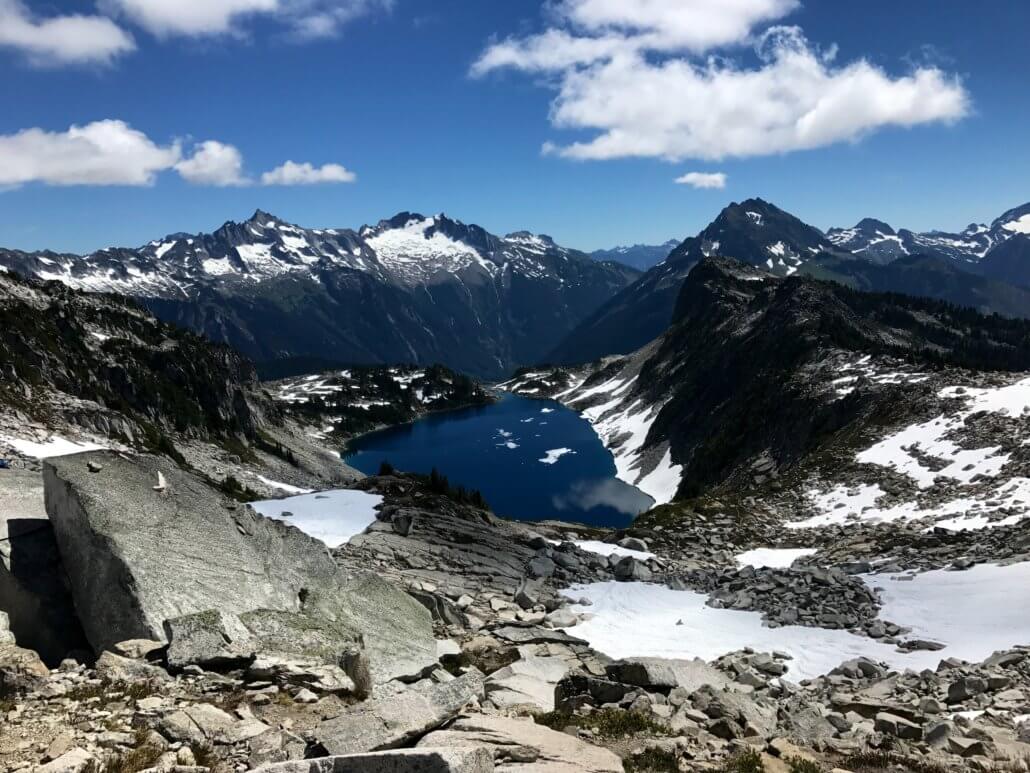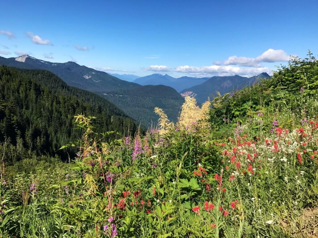 Mountains + a lake = my ideal hike. Bonus: a workout! With numerous peaks and mountain views, this has been my favorite hike in the North Cascades. As you get near to top, you travel across a short snow field to get to Hidden Lake. I didn’t find it challenging. The entire hike offers gorgeous mountain views, with the best view being at the end – Hidden Lake! Wildflowers were in bloom in late July.