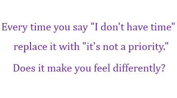 This statement is a game-changer. Why? It requires you to take ownership of what you are or aren’t doing. Telling yourself you don’t have time to do something allows you to let yourself off the hook. It’s so easy to do and I used to do it all the time! “I don’t have time to hit my yoga class every week,” or “I don’t have time to plan a wedding.” But, every time I change the wording to “I don’t have time” to “I’m not making it a priority,” I feel completely different. It all falls back on me not taking action.
