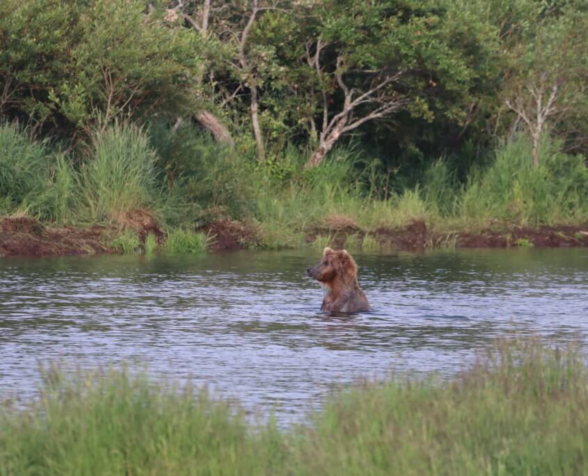 July and September are the best months to visit Katmai National Park to view the bears at Brooks Falls. To ensure the salmon are running, I would book the 2nd week of July. We were at Katmai National Park on July 19th. The salmon ran late this year and showed up several days into July vs. their normal run in late June.