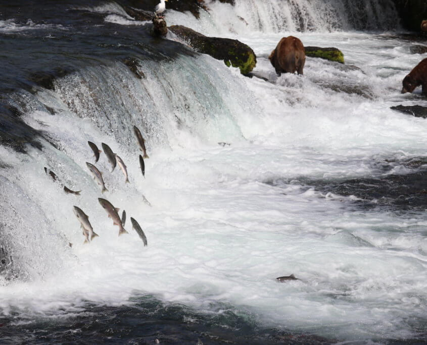 I couldn’t believe the amount of fish at Katmai National Park. Views below the North and South Platform were amazing as well as watching up to 15+ fish jumping at the same time trying to swim up Brooks Falls.